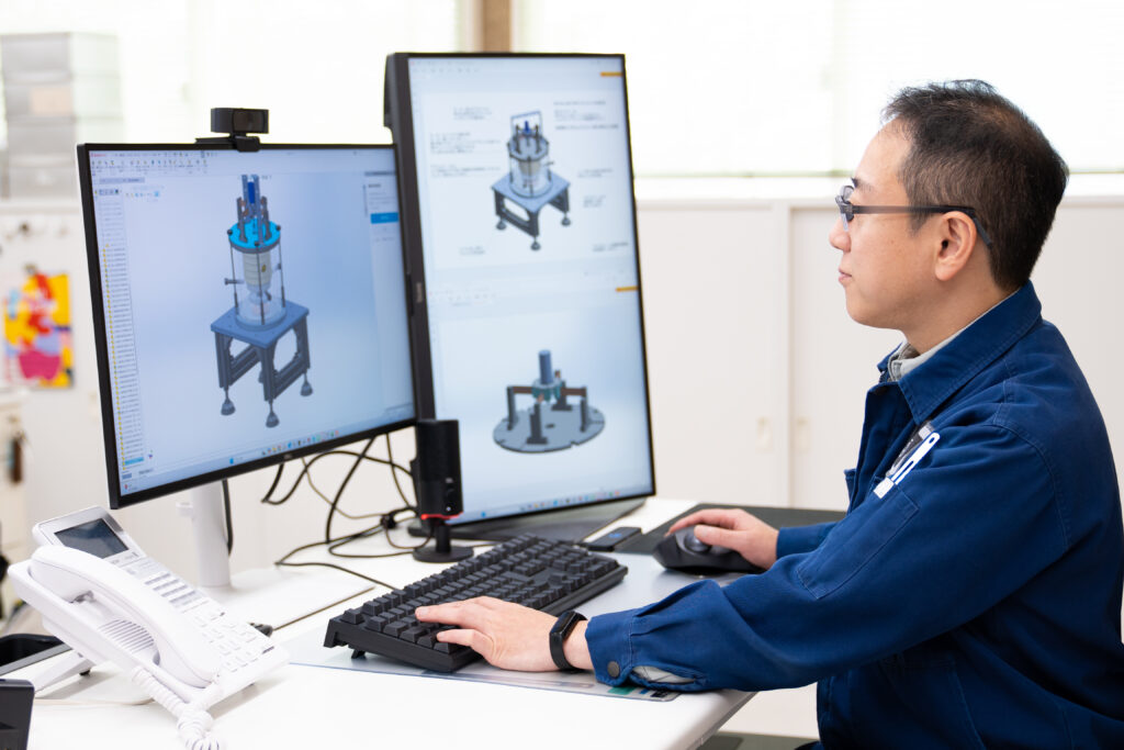 CADソフトを使用して試験治具を設計する仕事です。お客様の試験に関する要望をヒアリングし、現場と協力しながら作り上げていきます。