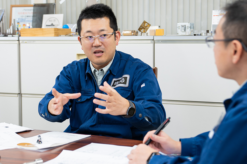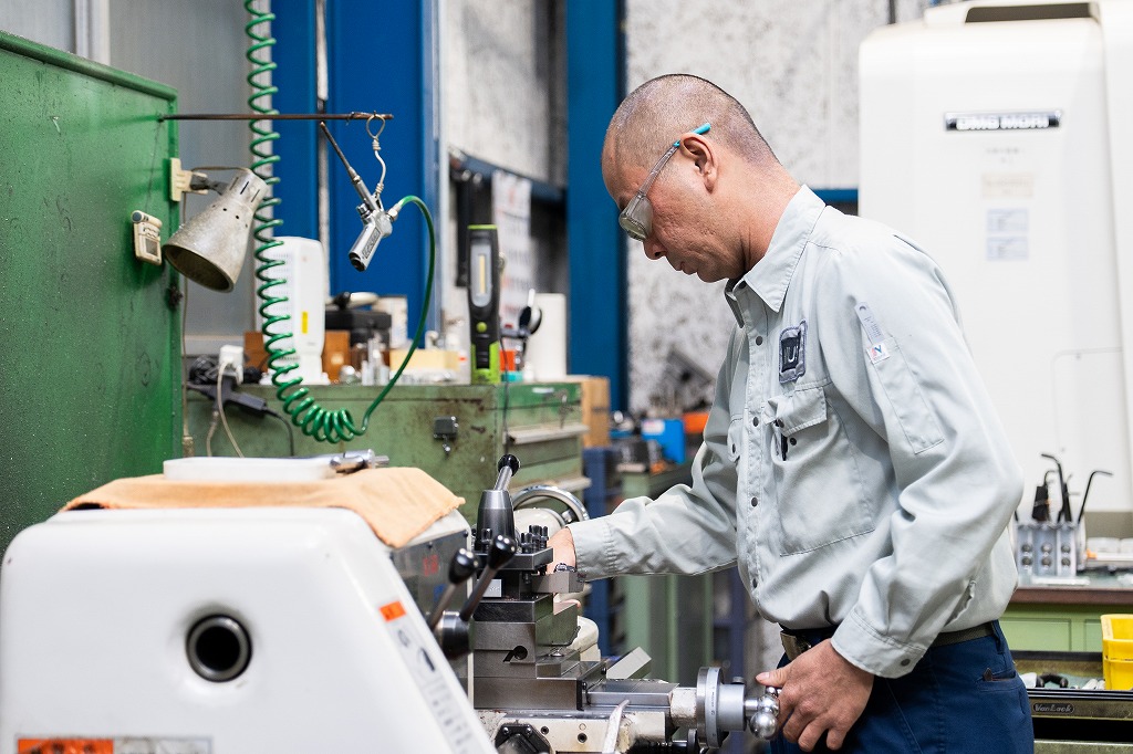 営業や設計から受け取った仕様書をもと に、主に金属加工ができる工作機械に工 具をセットしてさまざまな条件を入力し、 加工していきます。