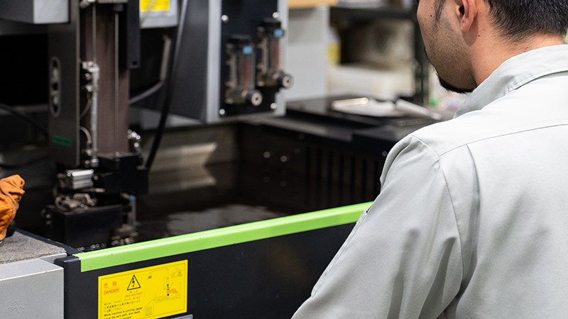 放電現象により発生する熱を利用し、表面を溶かすことで加工する方法です。切削加工では難しい複雑な形状や硬度の高い金属の加工も可能です。