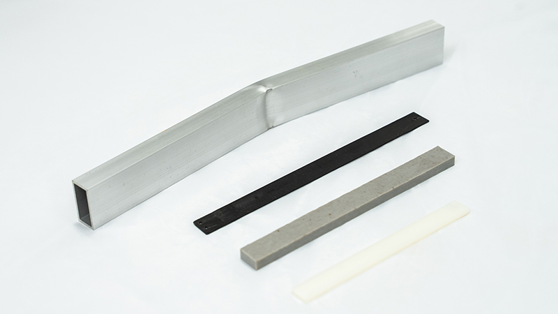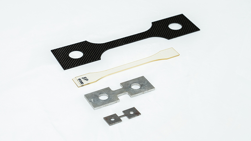 曲げ荷重を加えたときの強さやしなり具合を測る試験片です。