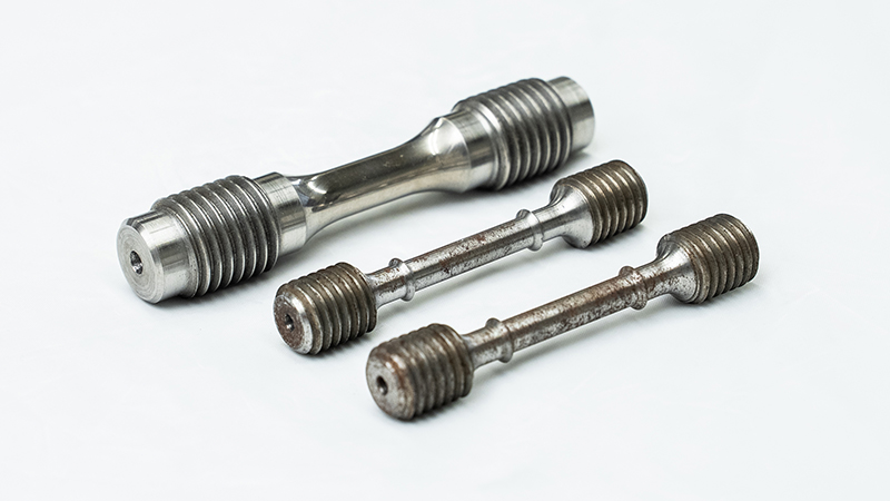 通常の引張試験よりも速い速度で引き延ばし、破断時の強度や延性をより精度高く評価する試験片です。