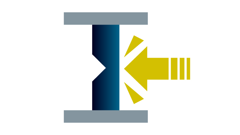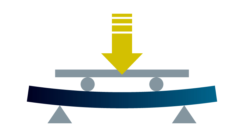 材料に曲げる力を加え、曲げに対する強度や靭性(粘り強さ)、応力(外的な力に対する反発力)などを測定する試験です。