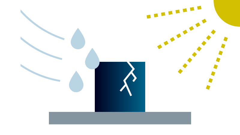 太陽光、雨、熱、湿度などの自然環境による製品や材料の劣化を、人工的に再現した環境で評価する試験です。